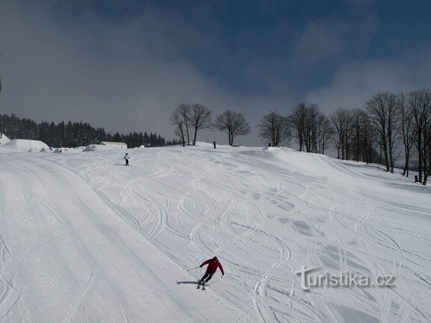 Zima se na konci svého panování nějak nevzdává a kromě mrazivého počasí přináší ještě stále solidní nadílku sněhu, byť ve trvanlivé formě již jen na horský masiv. Po čase nás jede o něco větší parta, bohužel pravidelná běžkařka Alena se doma věnuje odstraňování chorob, tak ji musí tentokrát nahradit dcera.
