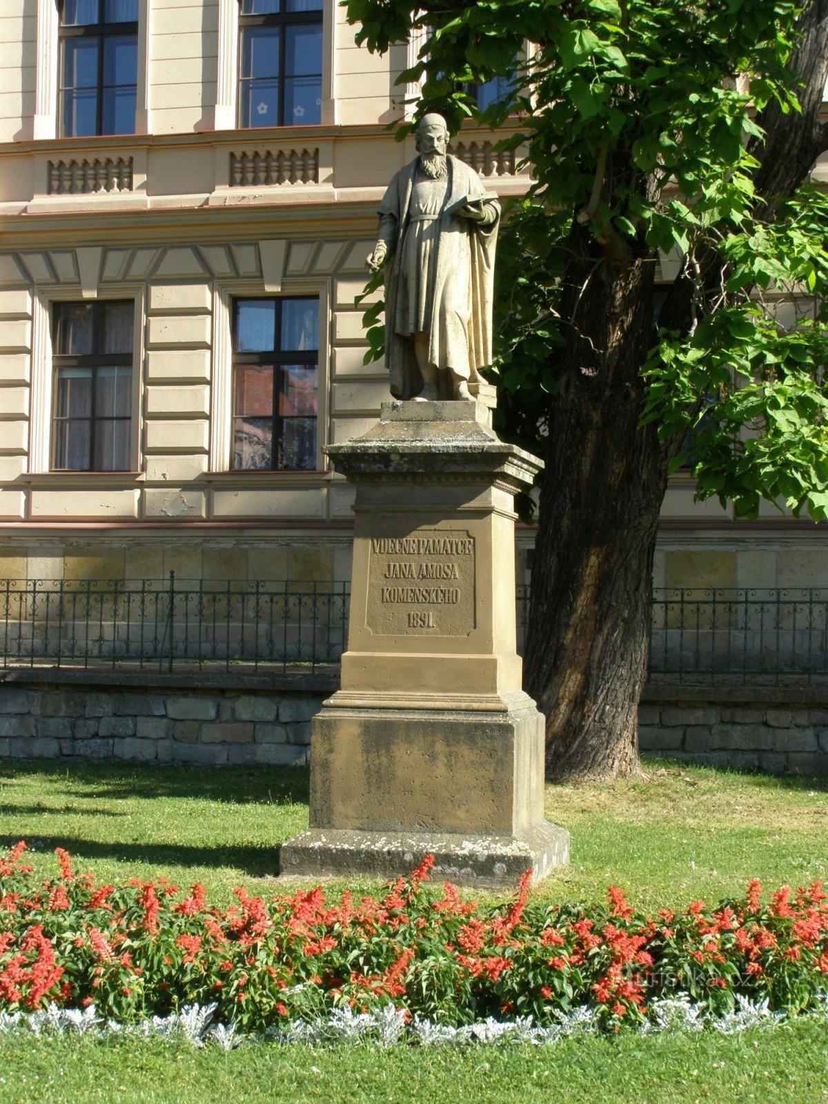 Pomník se sochou J. A. Komenského se nachází v prostoru před školou, která je pojmenována po J. A. Komenském. Zhotovena byla v roce 1891.