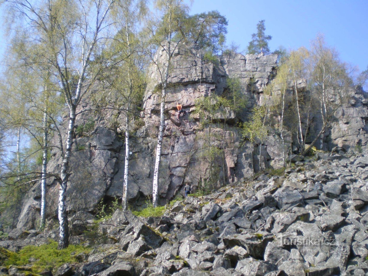 Více jak 15m vysoký skalní útvar, který leží ve vojenském újezdu Brdy, cca 1.200m pěšky na JJV od obce Malá Víska nad údolím Červeného potoka, naproti zřícenině hradu Valdek.Působivé scenérie, cvičné horolezecké terény. Cesta sem není značena, ale lze ji snadno nalézt, poměrně frekventovaná.UPOZORNĚNÍ: Vstup sice není oficiálně povolen, ale o víkendech a svátcích je pro pěší (a cyklisty) úřady…