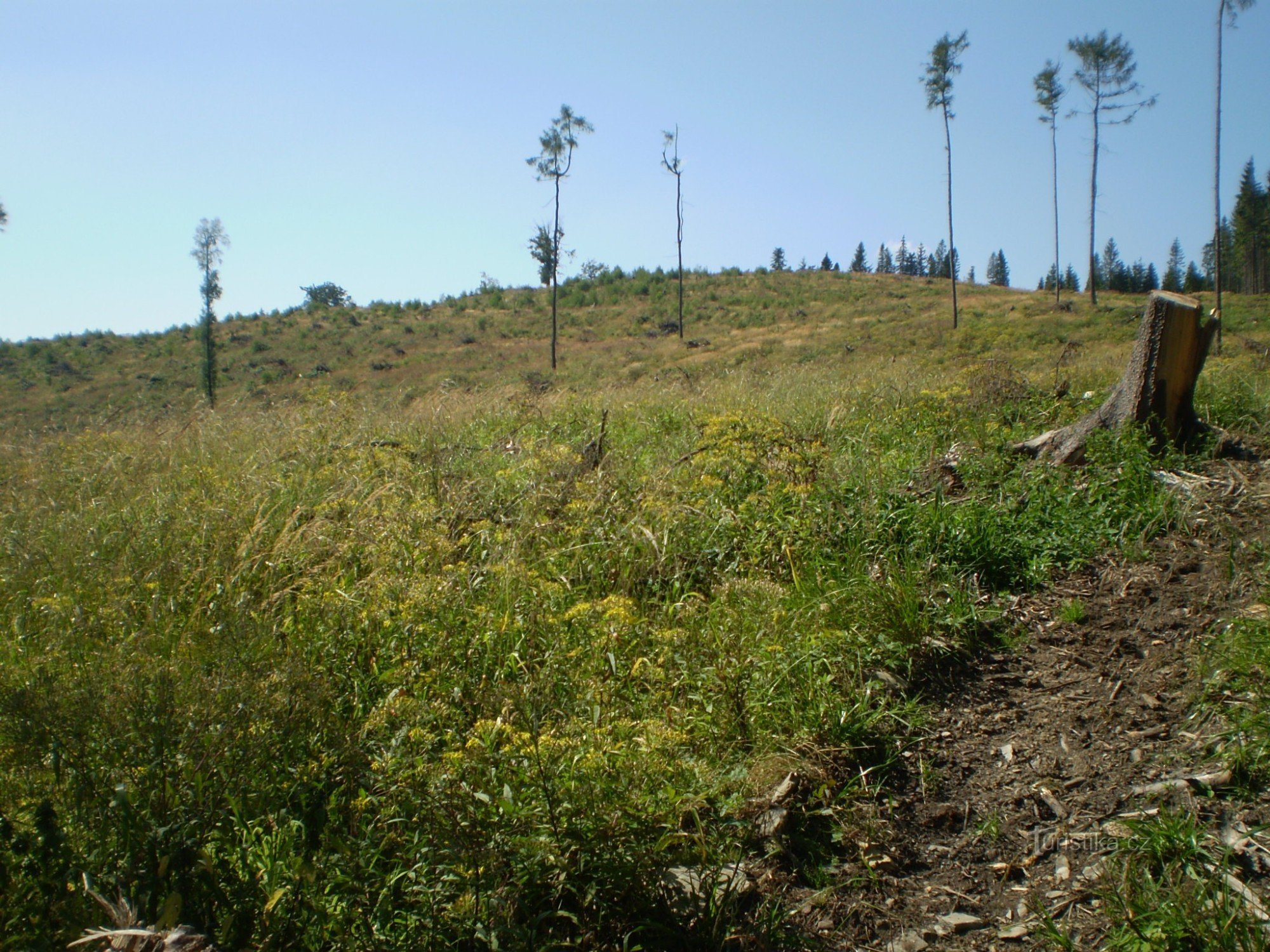 Jindřichova vyhlídka, jak je toto místo nazvané v mapách současných vlastně ani vyhlídkou není. Je to jeden z kopců Zlatohorské vrchoviny, kóta 797 by se dalo říct. Najít tento vrchol vůbec není snadné.