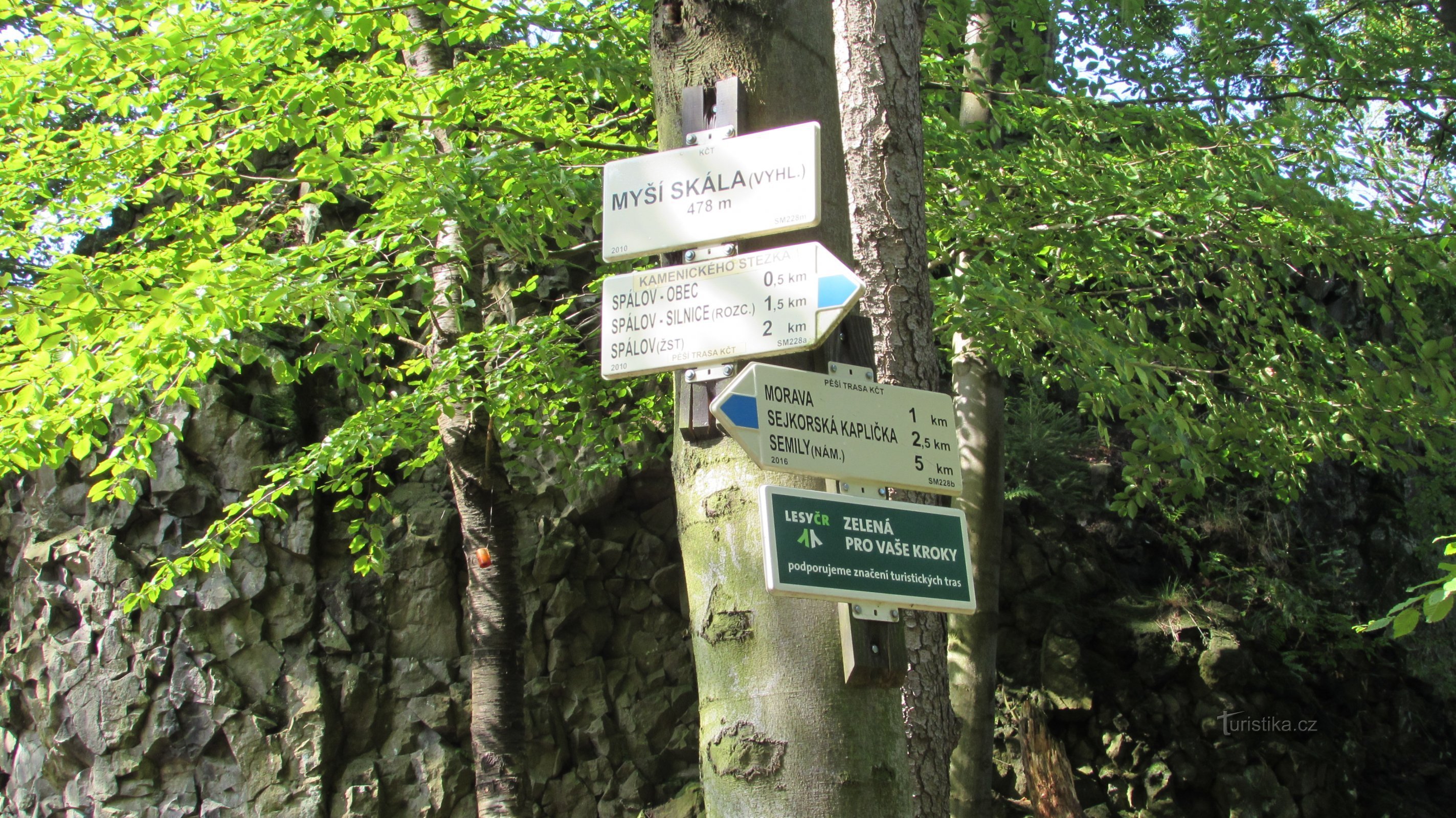 Kamenického stezka začíná na železniční zastávce Spálov. Pokračuje po silnici po modré značce do obce Spálov. Značka prudce stoupá do kopce do obce Spálov kam dorazí asi po 1 km. Značka prochází vesnicí kolem památné lípy, pak lesem stoupá až se dostane k Myší skále-vyhlídka. Po vrstevnici pokračuje modrá k přístřešku na rozcestí Morava. Tady se pokračuje po žluté značce a pohybuje se po…