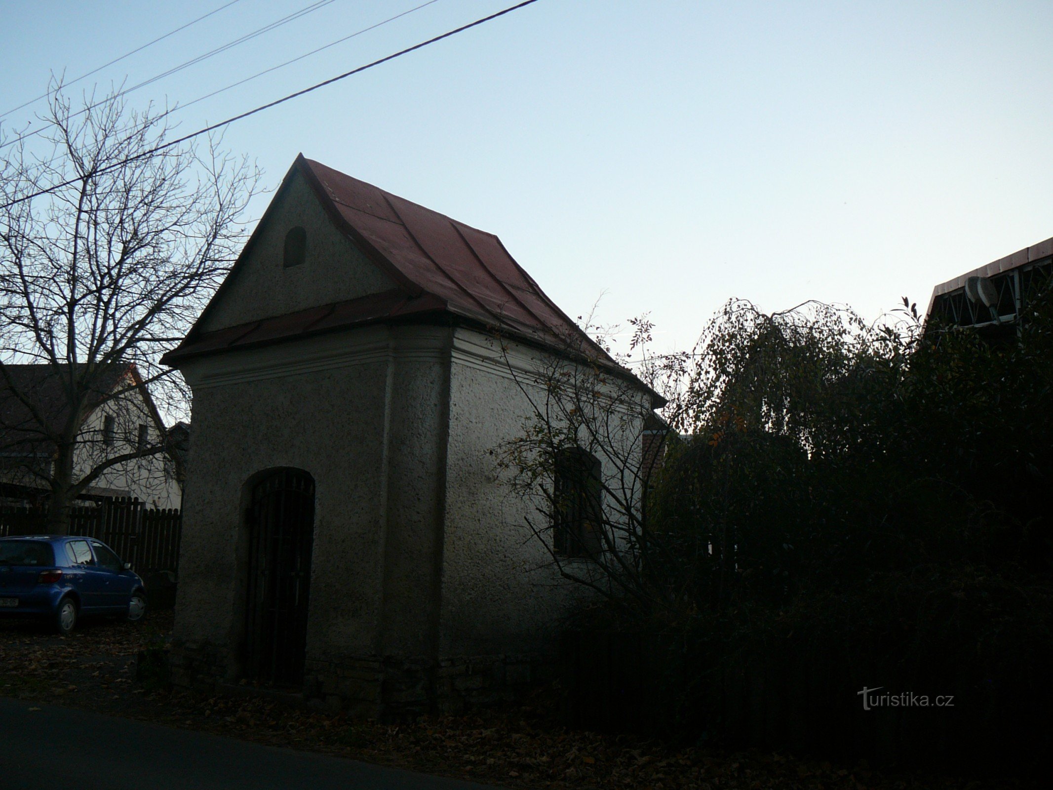 Na silnici mezi Skalicí a Raškovicemi, na levém břehu Morávky, hned pod kopcem Saklická Strážnice, stojí protažená půlkruhová kaple s drobým výklenkem ve štítě, profilovanou atikou, plechovou stříškou s trojúhelníkovým štítem, dvěma zamřížovanými bočními okny a vstupními dveřmi, dřevěnými a mřížovými. Patrně vznikla kolem roku 1840, protože na mapách III. vojenského mapování lze v těchto místech…