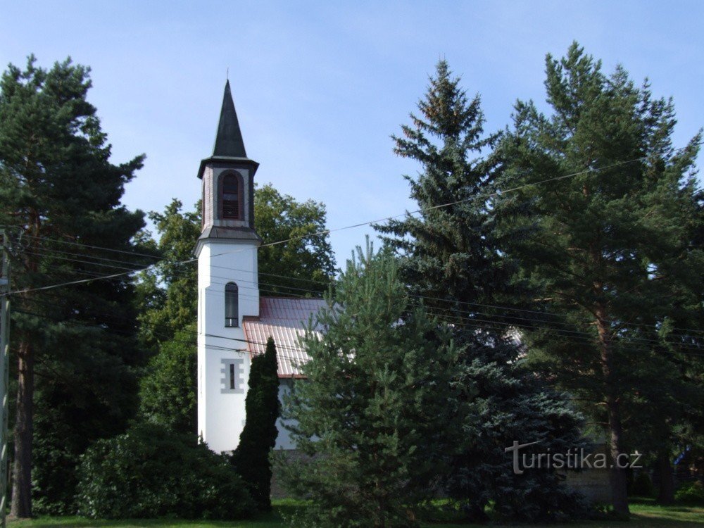 Kapli najdeme u hřbitova na Hamrskách. Základní Kámen byl položen v červnu roku 1891 a stavba byla dokončena v roce 1894. V roce 1899 byl u kaple zřízen hřbitov a v roce 1903 byla kaple rozšířena a ještě toho roku v září nově vysvěcena. Dnes kaple slouží převážné jako pohřební síň.
