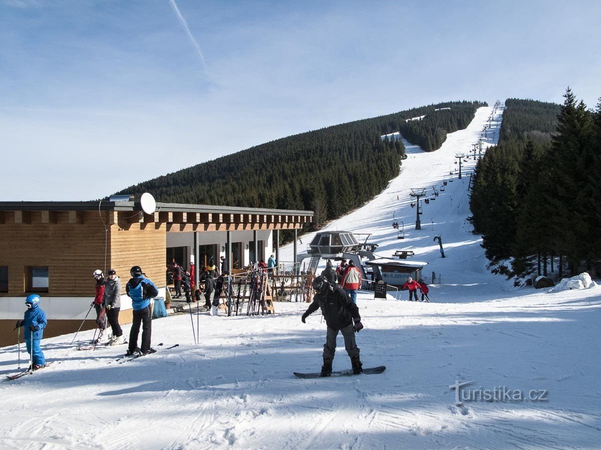 Na Ramzovou, vlakem. Pro nás turisty a lyžaře nejlogičtější spojení, byť ho máme poněkud komplikovanější nutností přestupu, a protože v rámci úspor je dnes většina stanic s automatickou obsluhou, chybí vlastně všude čekárna, kam by se dalo ukrýt při chladném počasí, obzvlášť když má vlak sekeru. To už naštěstí začátkem března tak úplně neplatí a navíc když první sobota slibuje téměř plně Jarní…