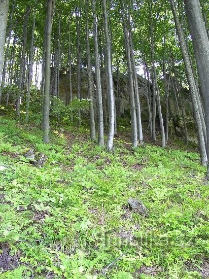 Skalnatý a zalesněný hřbet s pískovcovými skalami nad jižním břehem přehrady Bystřička, jihovýchodně od Valašského Meziříčí. Vyhledávané horolezecké terény.