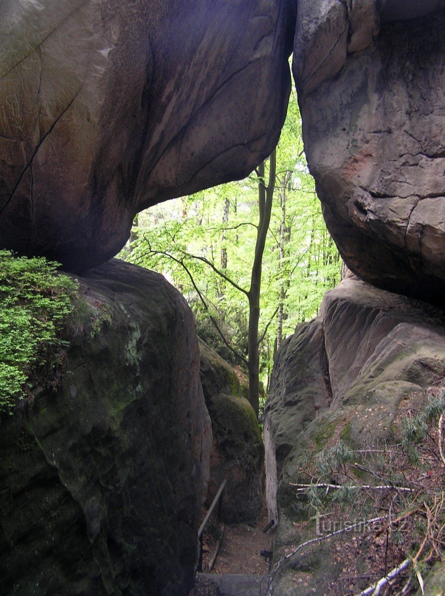 70metrů dlouhá, hluboká rozselina ve skalní stěně mezi Klokočskými a Betlémskými skalami, nad obcí Klokočí. Na vrchol skalní stěny se dostanete z obce Klokočí, po červené značce, skrz 70 metrů dlouhou soutěsku. Ve středověku zde vedla stará kupecká Slezská cesta a dodnes můžete ve skalách spatřit kupecké značky. Po červené se pak dostanete dál po okraji Betlémských skal přes vyhlídku na Zdenčině…