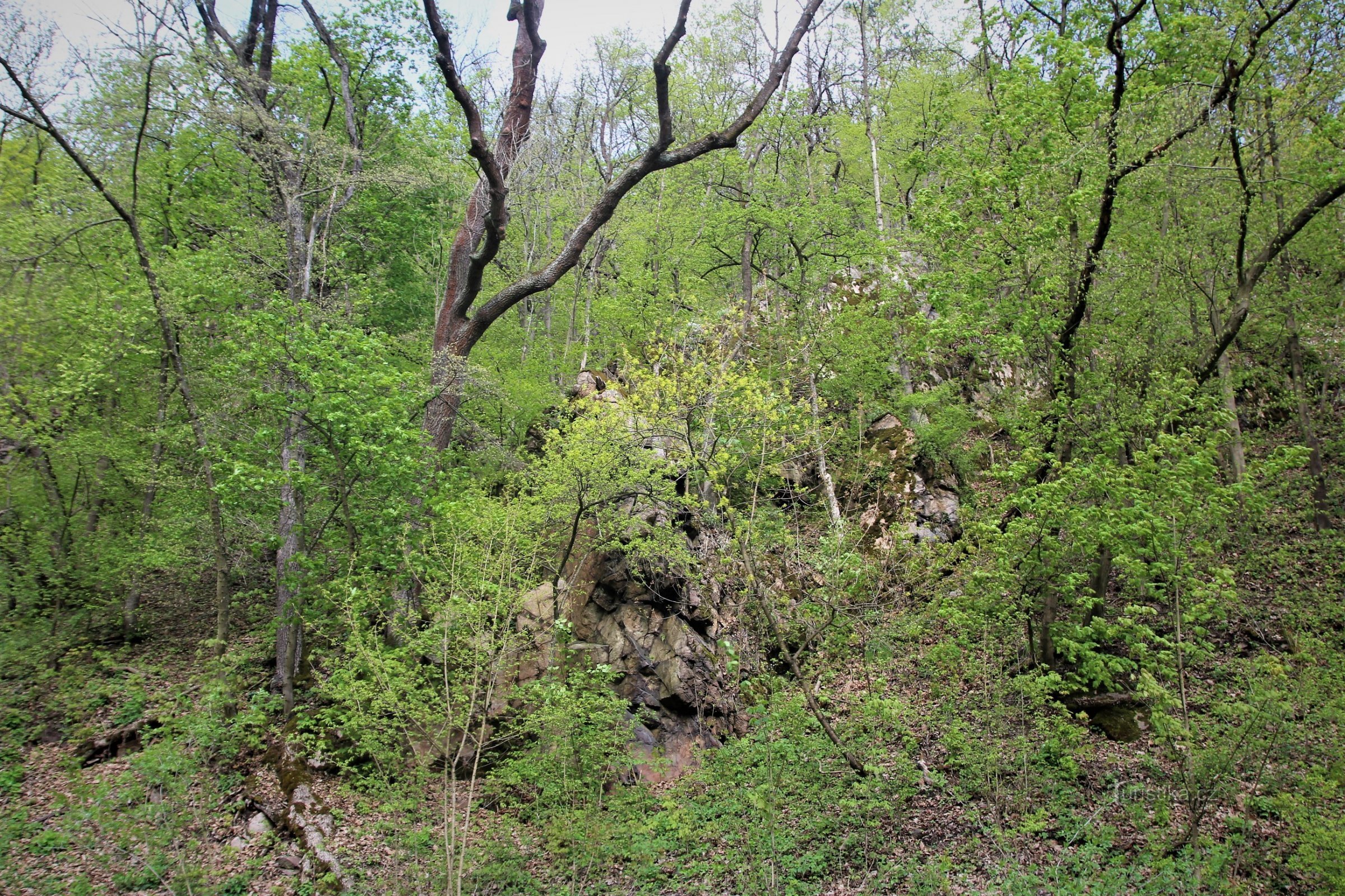 Nachází se v hlubokém průlomovém údolí řeky Svitavy na jeho levé údolní skalnaté stráni, zvedající se nad silnicí mezi Adamovem a Bílovicemi nad Svitavou. Od silnice se zde vzůru do příkré stráně zvedá několik sklaních hřbítků s okolními suťovými svahy, jejichž skalní podloží tvoří granodiorit brněnského masívu. V lesních porostech převažují zakrslé dubohabřiny a břekové doubravy s dubem zimním a…