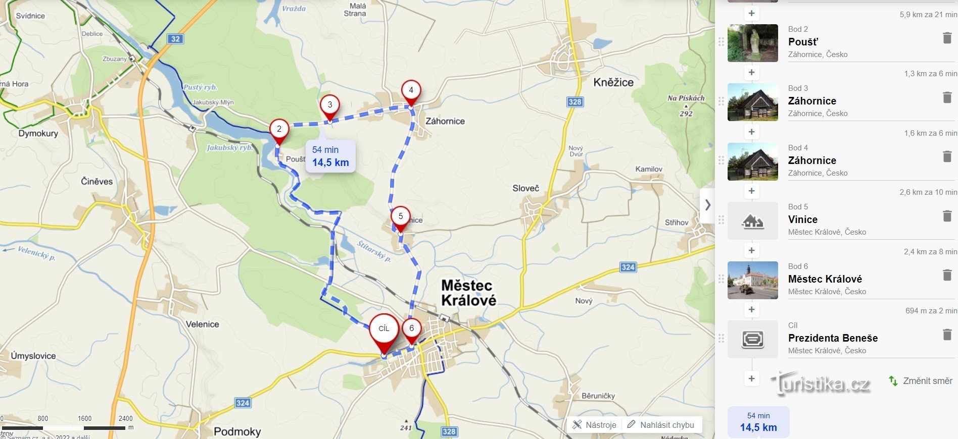 Další místa v okolí - Koloběžka: Jiráskovou stezkou na Poušť a zpět do Městce Králové