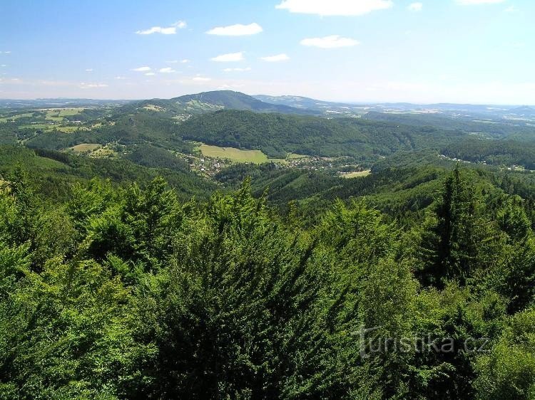 Vyhlídkový vrch s rozhlednou se nachází cestou z Malé Skály přes Pantheon a Frýdštejn.