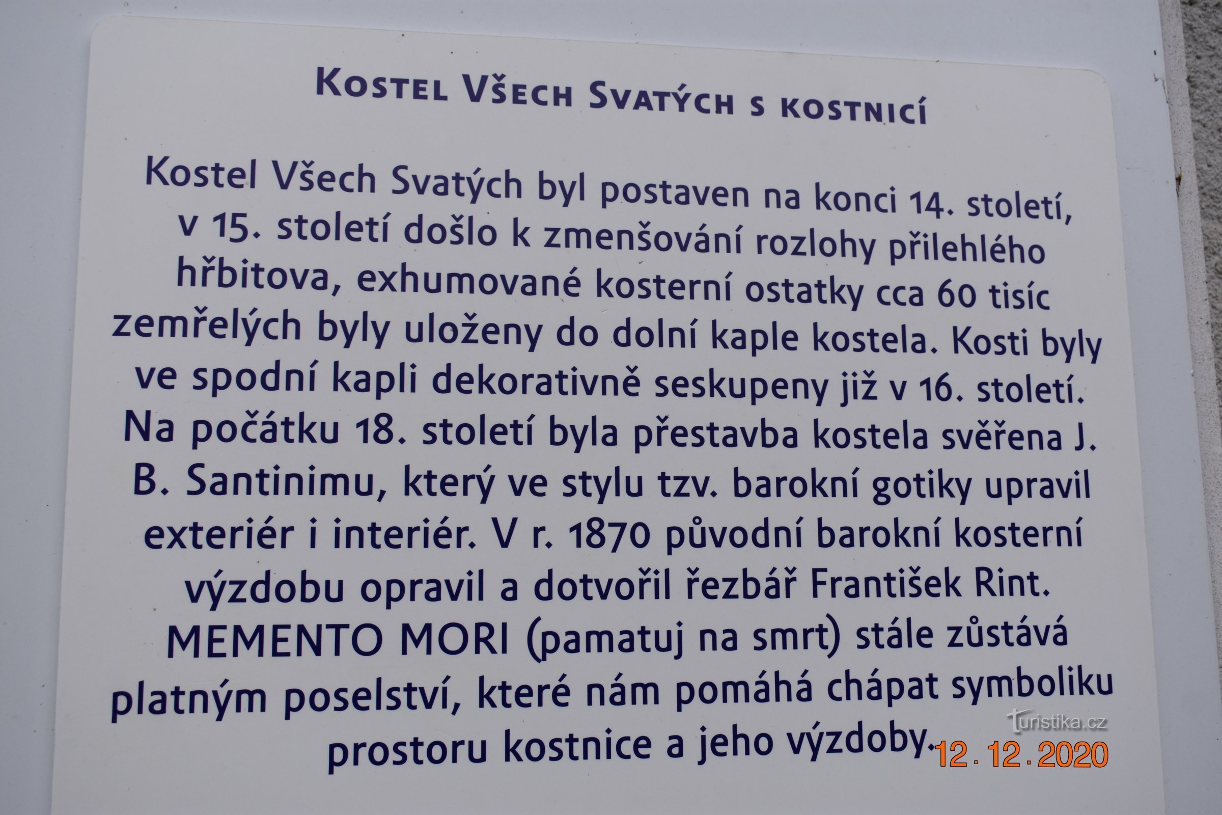 Katedrála Nanebevzetí Panny Marie a svatého Jana Křtitele, Kostel Všech svatých a Kostnice, SedlecZámecká, 284 03 Kutná Hora (Sedlec, část města)12.12.2020 Katedrála Nanebevzetí Panny Marie a svatého Jana Křtitelepamátka UNESCOChrám bývalého nejstaršího cisterciáckého opatství v Čechách a první stavba katedrálního typu na našem území. Popisu se věnovat nechci. Na co chci…