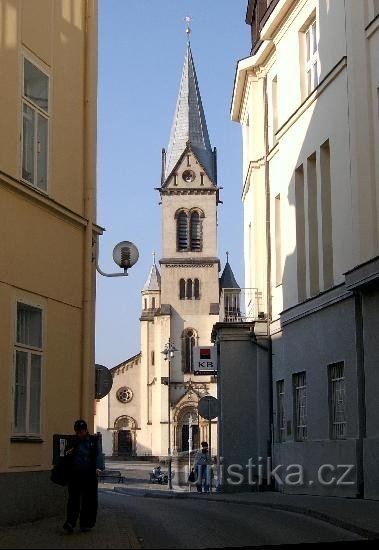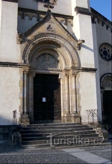 Původně se zde nacházela stavba gotického kostela z 50. let 14. století. Po několika přestavbách byla v letech 1897-1899 vystavěna trojlodní novorománská bazilika s Věží podle projektu Ludvíka Láblera. Nový kostel byl slavnostně vysvěcen 6. června 1900.