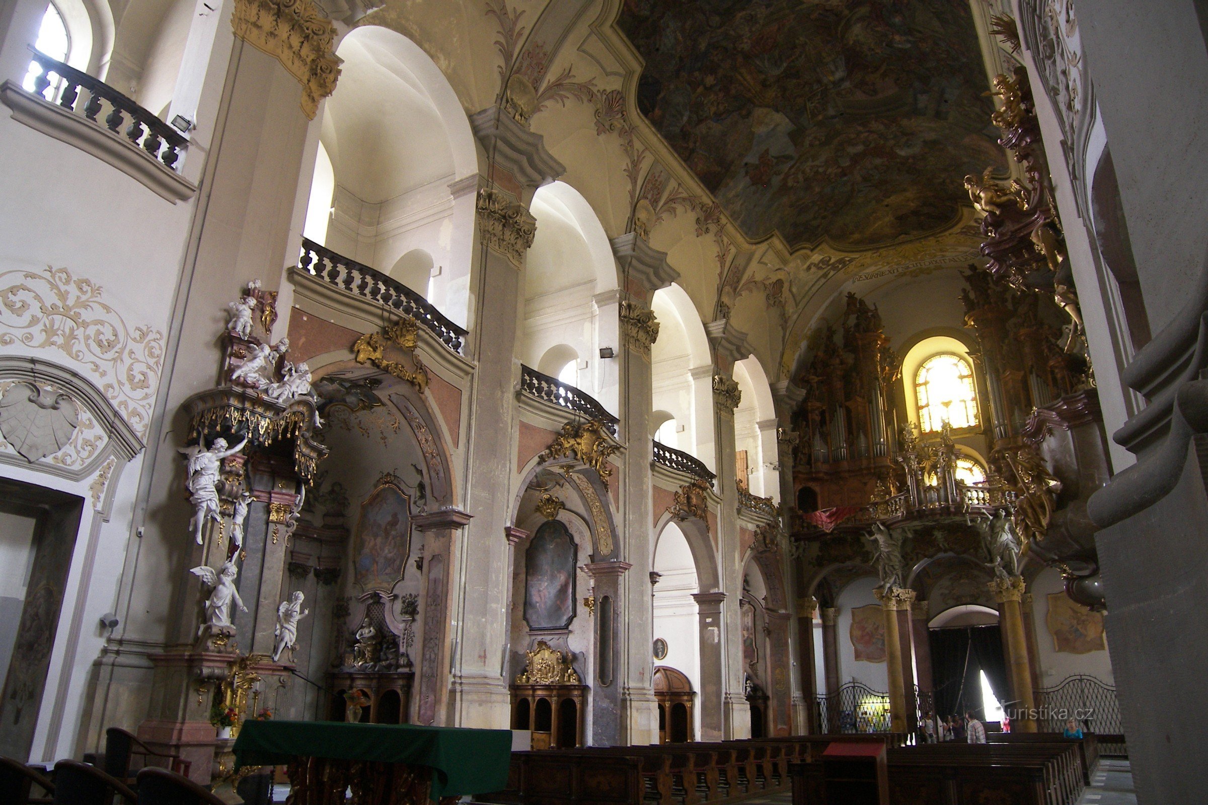Monumentální sálová barokní stavba jezuitského auniverzitního kostela vznikla vletech 1712-1719 Prací Lucase Glöckela podle projektu Michaela Kleina. Na architektuře průčelí apředsunutém schodišti pracoval Václav Render, sochařské práce pocházejí zdílny Zirnovy. Na bohatě zdobeném interiéru se podíleli malíři J. K. Handtke, J. J. Schmidt aJ. Wickart, štukatér A. Ricci apozlacovač W. Rossmayer.…