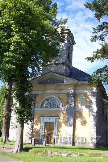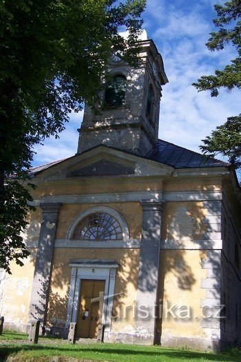 Uprostřed obce kousek za návsí stojí na místě starého kostela trojlodní klasicistní Kostel Povýšení sv.Kříže, který byl postaven v letech 1832 – 1833.