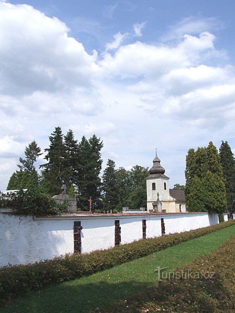 Pozdně barokní jednolodní hřbitovní kostel sv. Filipa a Jakuba z roku 1776 stojí zhruba uprostřed obce a ze západní strany je obklopen hřbitovem. Kdysi zvolna chátrající kostel je v současné době intenzivně opravován. Od roku 2012 má opravenu venkovní fasádu přičemž byla provedena i celková rekonstrukce hranolové věže kostela na západní straně. Nyní probíhají opravy interíéru. Hlavní oltář…