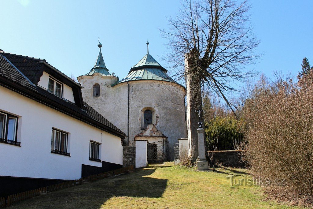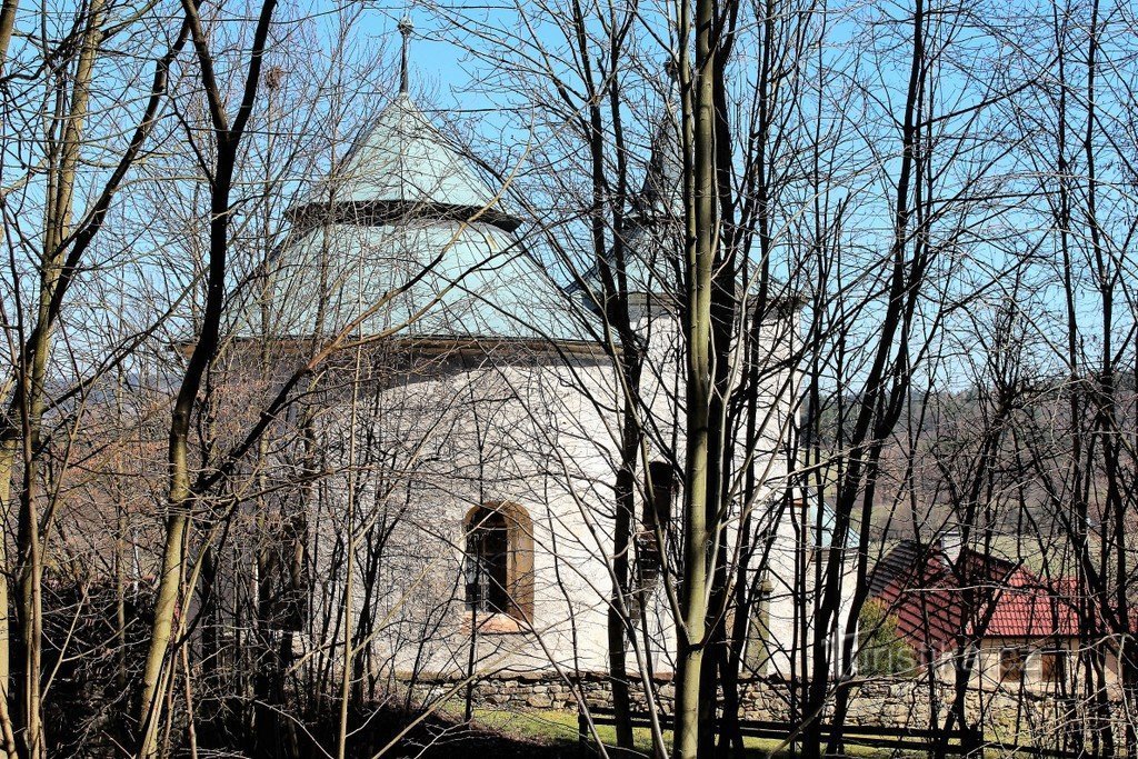 Původní rotunda byla postavena kolem roku 1200 v románském slohu. První barokní přestavba byla provedena v 17. století. Byla obnovena klenba presbytáře a kupole nad lodí. Po roce 1778 přibylo patro věže, došlo k úpravě oken a na severní straně byla přistavěna sakristie a předsíň před vchodem do kostela. Při jižní straně je torzo schodiště na kruchtu. Dnes se díváme na rotundu s hranolovou věží.…