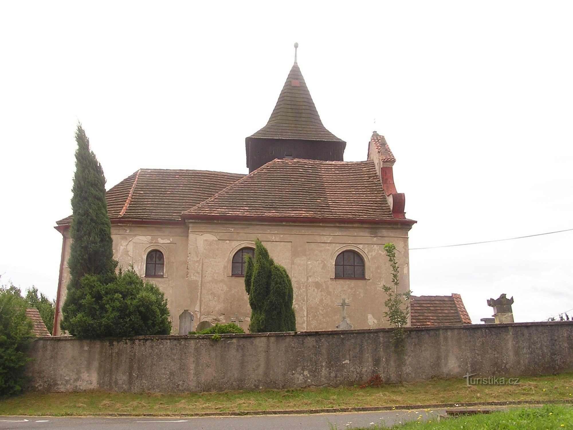 K jednolodnímu kostelu je přistavena čtyřboká zvonice s dřevěným zvonovým patrem. V něm je umístěn zvon z 15.století. Výraznější přestavba kostelíka byla provedena v 18.století.