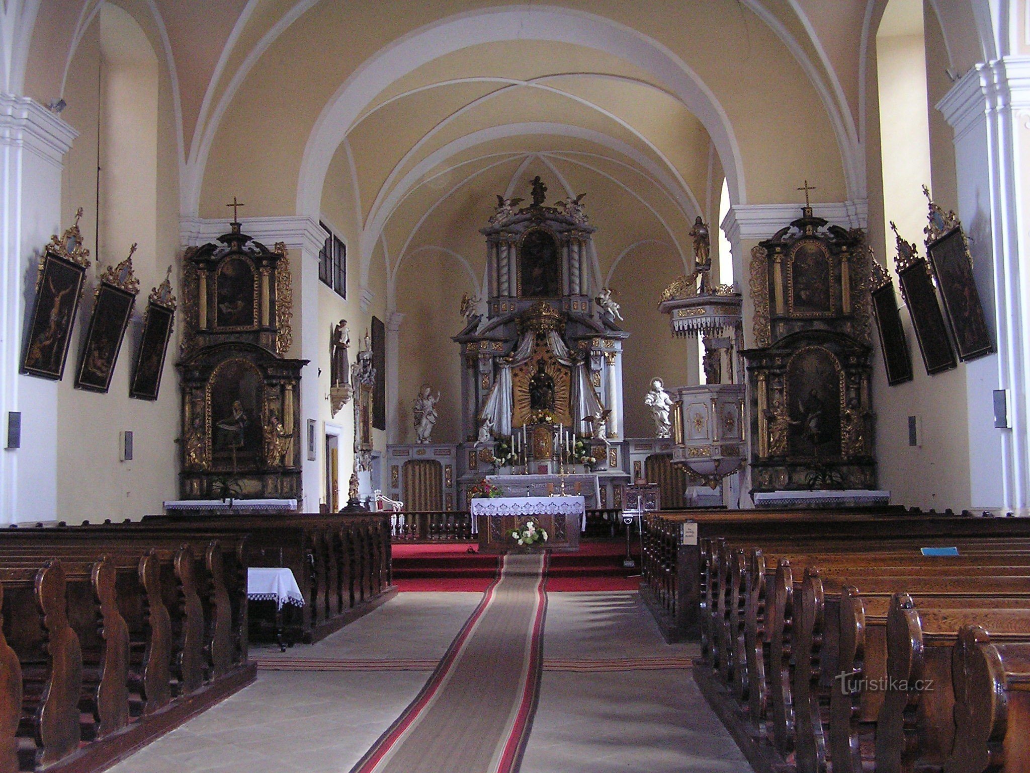 Jednolodní stavba má pětiboký presbytář, na jižní straně obdélníkovou sakristii a oratoř. Průčelí je…