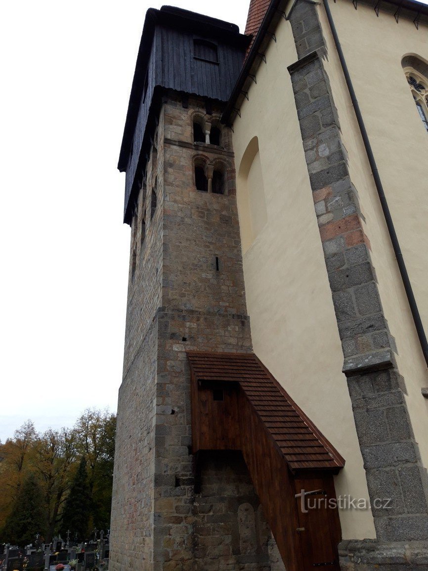 Severní stěna objektu a část kamenné věže jsou nejstaršími částmi kostela a pochází patrně z poslední třetiny 12. století. Zdejší svatostánek, postavený v románském slohu, by tedy měl být nejstarší dochovanou…