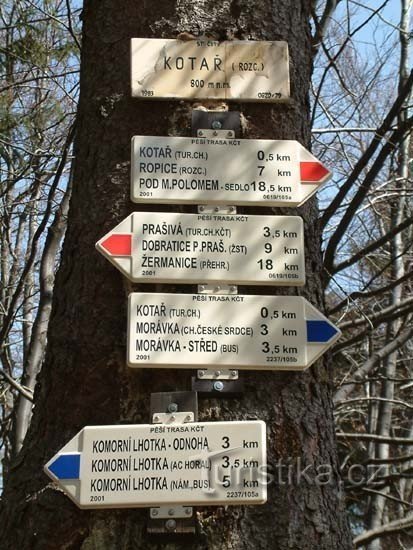 Kotař je rozcestí červené a modré turistické značky a nachází se na okraji lesa u lesní cesty severním směrem od obce Morávka. Půl kilometru od rozcestí je stejnojmenná turistická Chata Na Kotaři. Výchozím bodem modré turistické trasy je střed obce Komorní Lhotka a přes rozcestí pokračujeme dále kolem turistické chaty do rekreační obce Morávka. Červená značka vede z Malé Prašivé přes rozcestí…