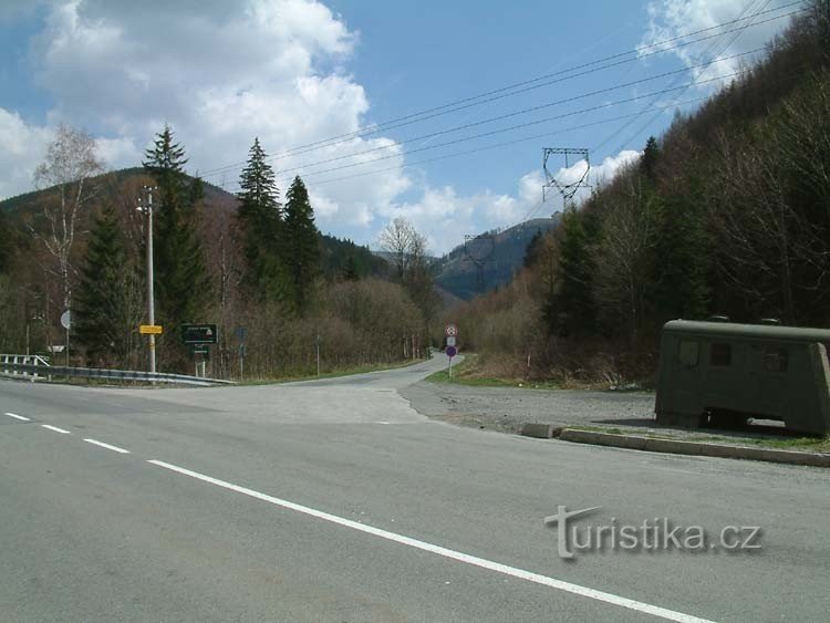 Rozcestí modré a zelené turistické značky. Nachází se na hlavní silnici na Červenohorské sedlo. Modrá značka pokračuje k dolní nádrži vodního díla Dlouhé Stráně. Po zelené značce se dostanete až na chatu Švýcárna.