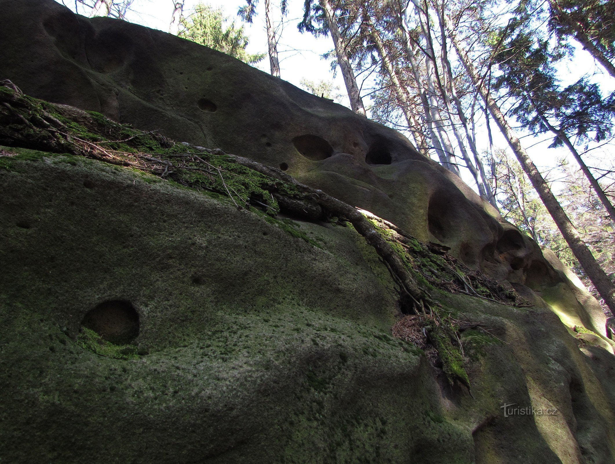 O zajímavém mrazovém srubu pod kótou Krajčice (730 m) jsem již psal. Turista, procházející od Čertových skal na hlavní hřeben Vizovických vrchů o něj není ochuzen, neboť značená cesta prochází na dohled od skaliska a pokud příchozí umí číst, je mu k dispozici i informační panel. Tato skála zde není ojedinělou záležitostí - mezi vrcholem Kopců a Krajčicí se na hřebenu nacházejí další, už menší…
