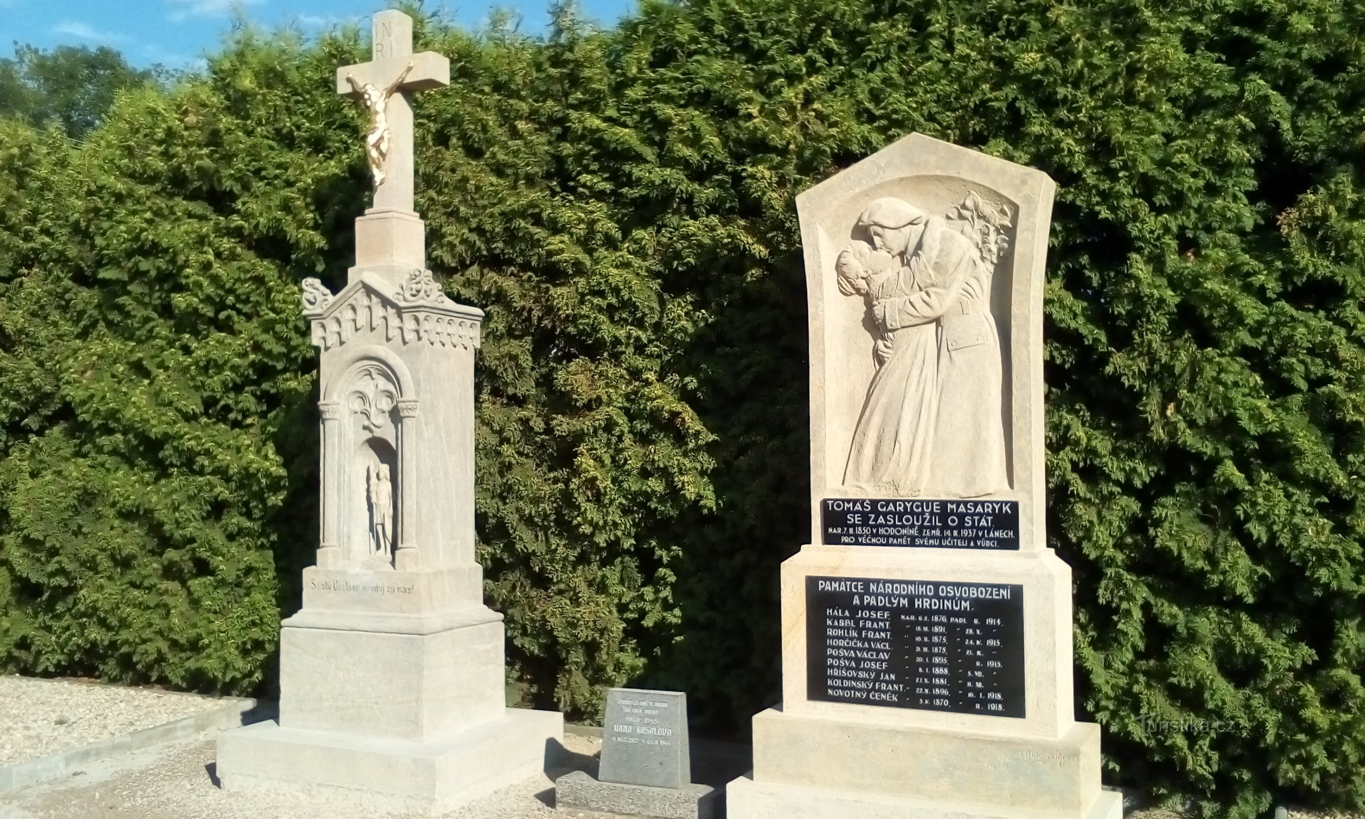 Kříž se nachází v centrální čássti obce u zastvky hned vedle pomníku padlým. Na kříži je samozřejmě Ježíš a pod ním se nachází sv. Václav doplněný nápisem:Svatý Václave oroduj za nás!