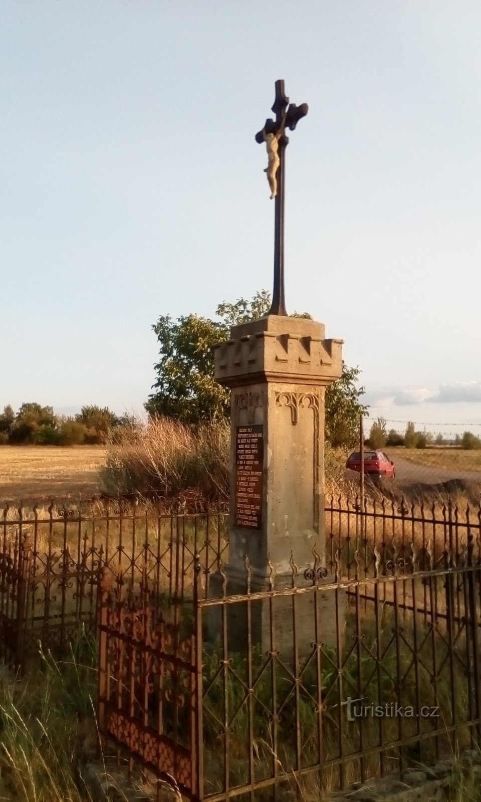 Kříž se nachází u fotbalového hřiště, v západní části obce u cyklostezky do osady Blato.Na kříži je text:
