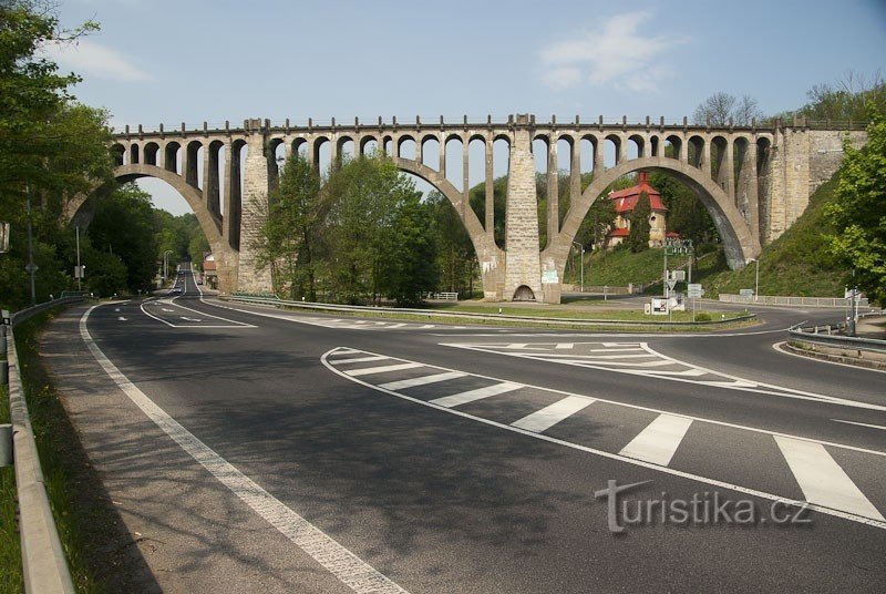 Mohutný železobetonový železniční viadukt na trati Praha – Turnov (070) 6 km jihozápadně od Mladé Boleslavi. Vede přes údolí Strenického (nebo Skalského) potoka, nedaleko jeho ústí do Jizery. Délka mostu je 152 m, oblouky mají rozpětí 28 m, výšku 12m. Šířka pilířů je 6m, mostovka je široká 4m, nejvyšší výška přemostění je 27m, mezi hlavními oblouky a mostovkou jsou menší železobetonové oblouky…