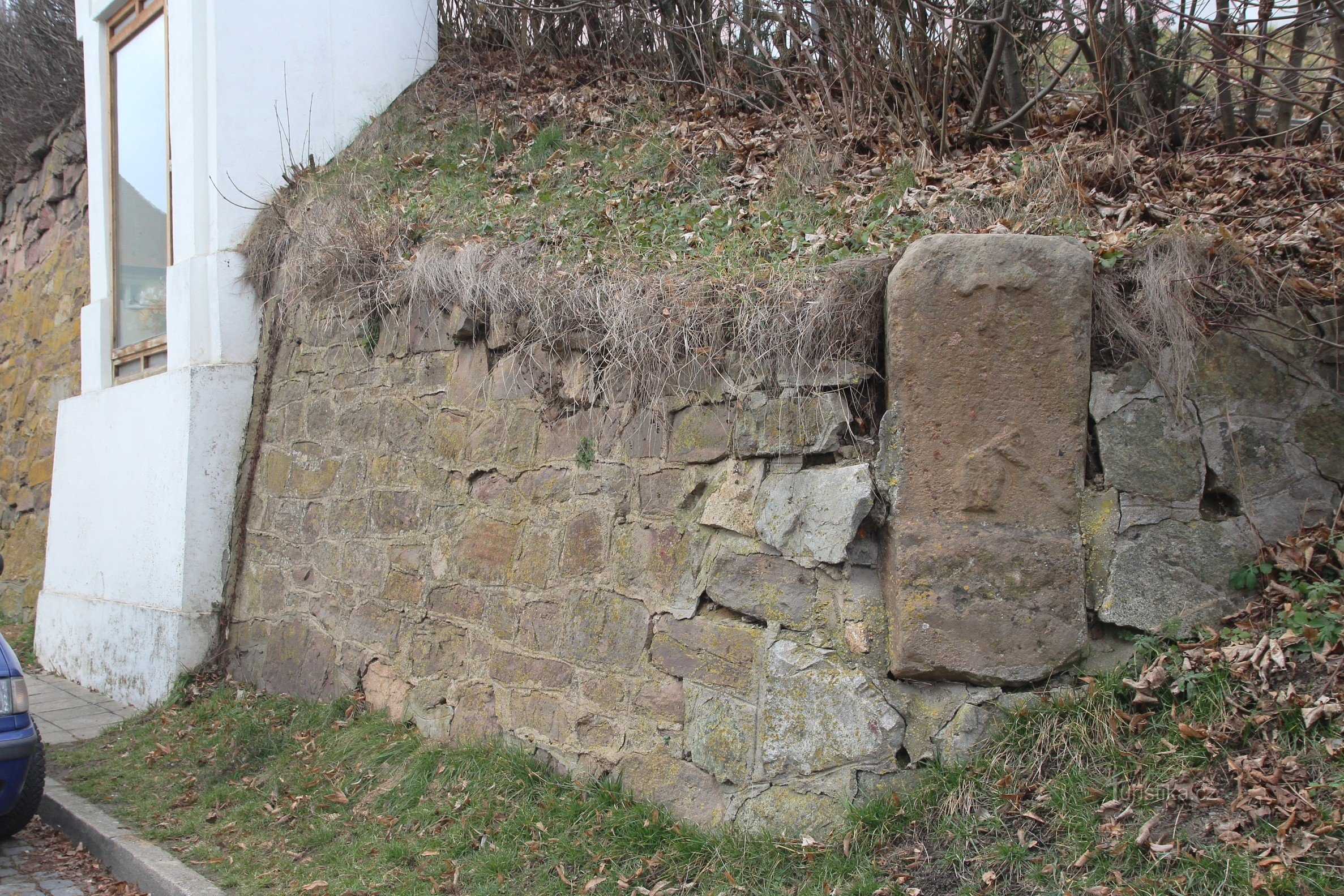 Tento smírčí kámen je zazděn v ohradní zdi v ulici Křížkovského, necelých 20 m východně od zdejšího kostela sv. Maří Magdaleny přímo u chodníku. Na kameni je dobře znatelný reliéf jetelového kříže a reliéf poutnické hole s ranečkem nebo hlavy se zaťatou motykou či sekerou. Prostor mezi oběma reliéfy vyplňuje nápis, který je ale díky značnému zvětrání celé desky již velice špatně čitelný. Jediné,…