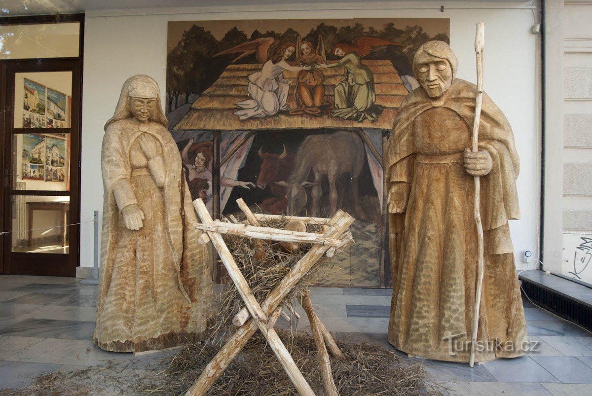 Vlastně mě do muzea navedla náhoda, sice jsem si ráno přečetl článek o výstavě betlému v šumperském muzeu, ale zrovna nám vypli proud, takže nemožnost tvořit mě vyhnala do ulic (podívat se na vánoční strom na Točáku). A když už jsem tak zevloval po bulváru, dorazil jsem až k muzeu (tedy k Pavlínině dvoru). U vchodu skutečně trůní svatá rodina v životní velikosti. Daleko víc mě však zaujal plakát…