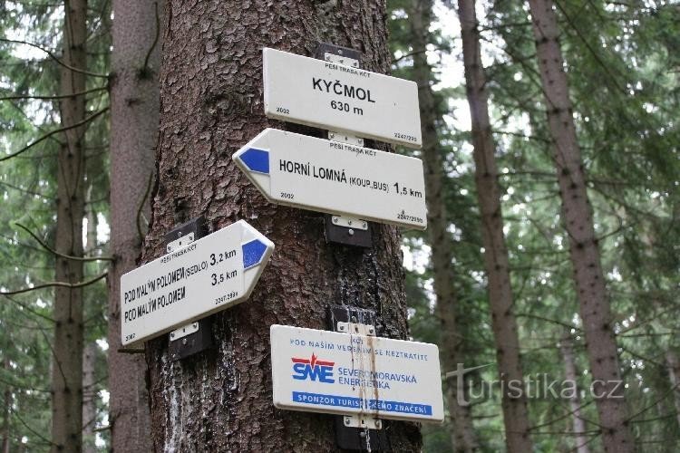 Kyčmol je orientační místo a rozcestí na modré turistické značce a nachází se asi jeden kilometr jihozápadním směrem od obce Horní Lomná. Rozcestník je umístěn na stromě v oblasti lesa a u křižovatky lesních cest. Kolem rozcestí protéká horský potok Kyčmol. Kromě turistické trasy prochází rozcestím značená cyklostezka. Modrá značka vede od koupaliště v Horní Lomné a přes rozcestí jdeme dále Pod…