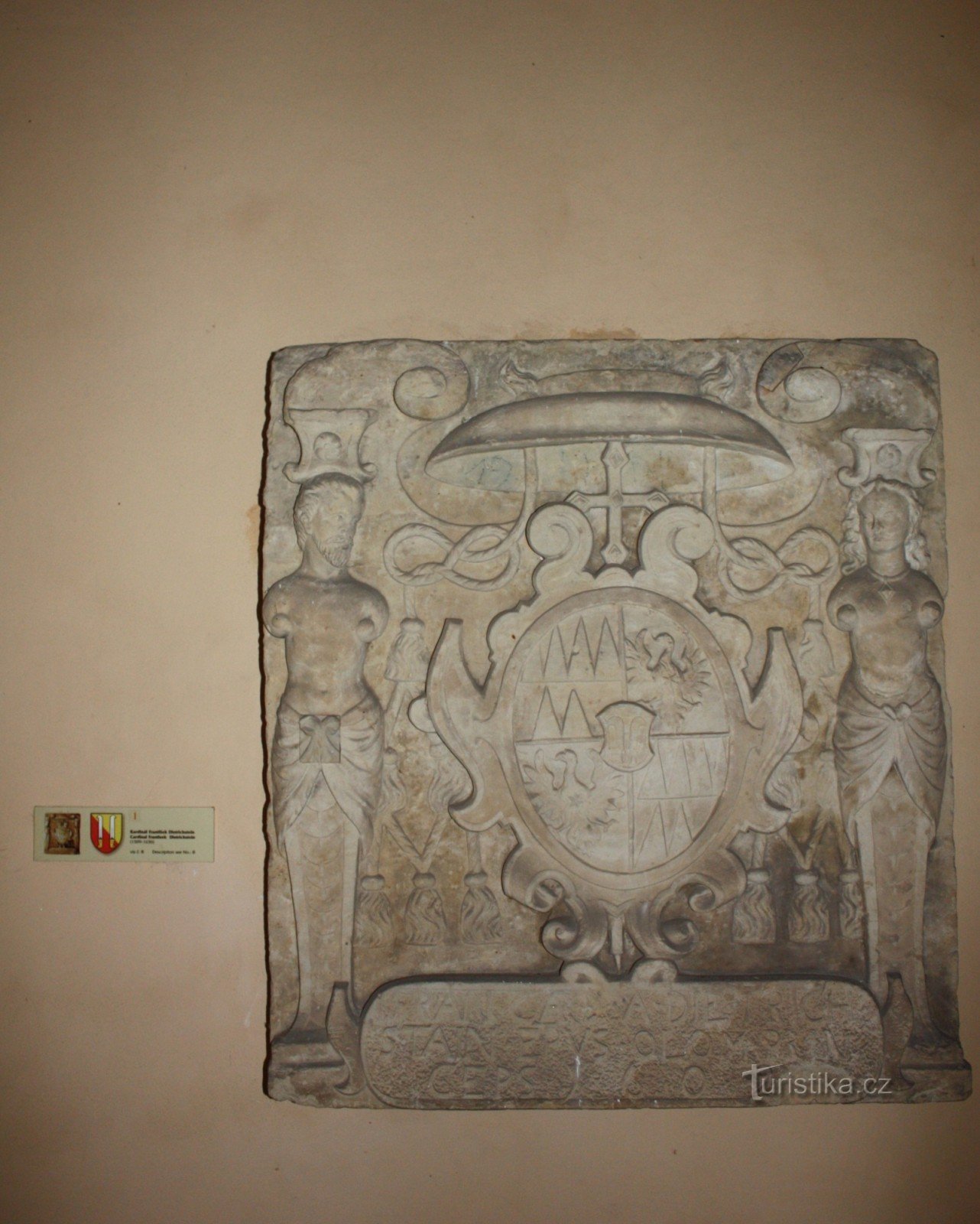 A právě takovou sbírku kamenných a sádrových znaků olomouckých biskupů a arcibiskupů ze sbírek plastik olomouckého arcibiskupství, můžeme zhlédnout na nádvoří kroměřížského zámku.