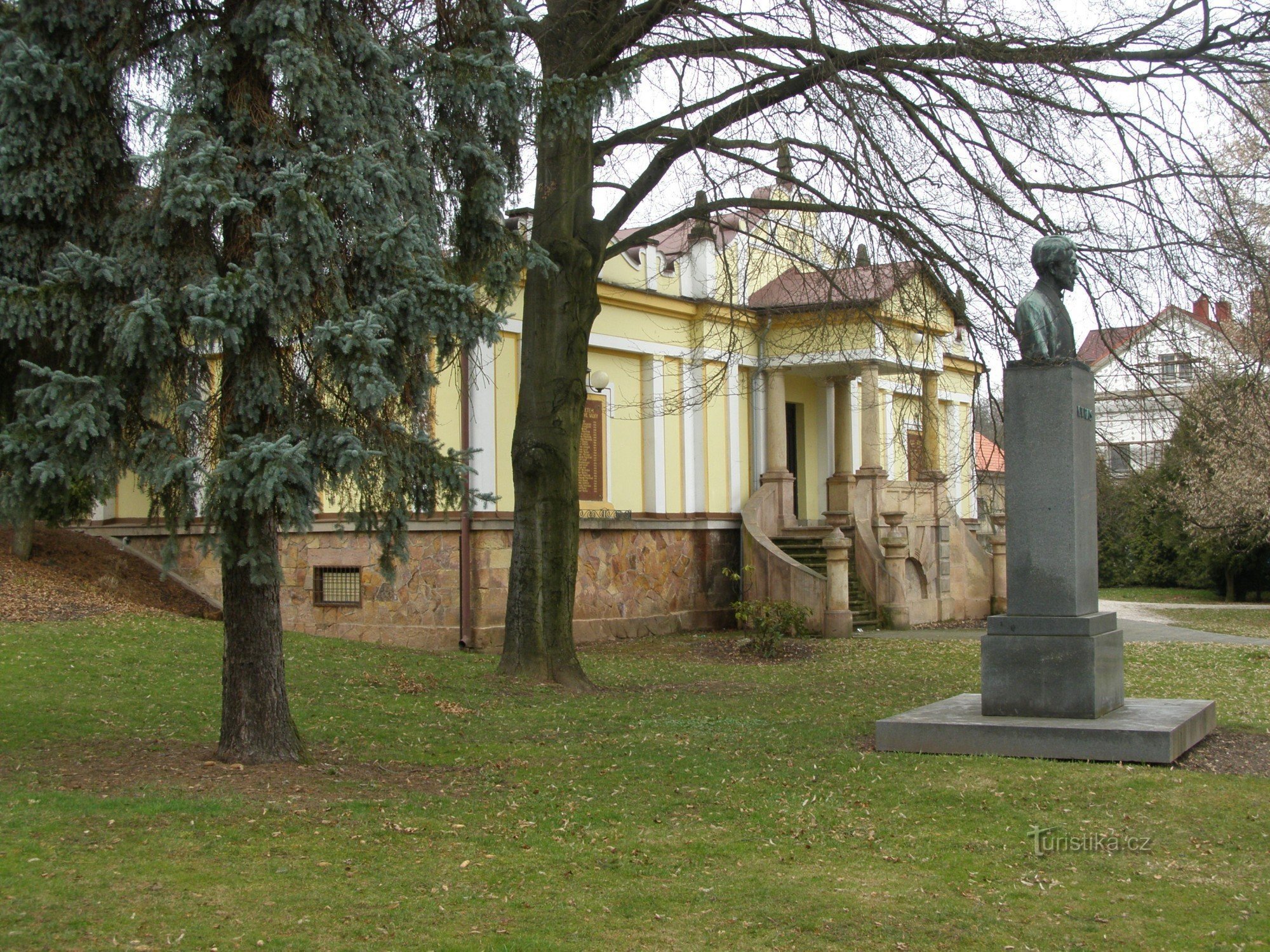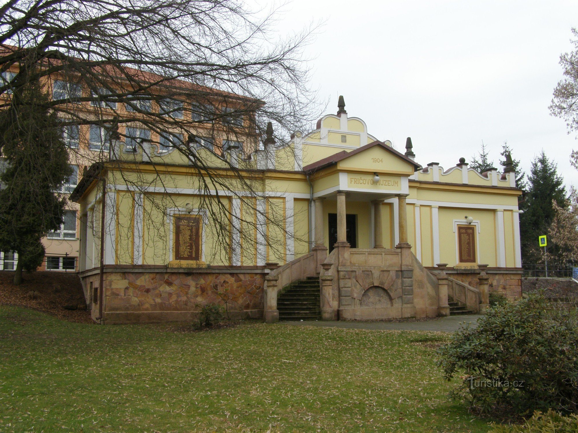 Fričovo muzeum se nachází cca polovoně cesty mezi kostelem a náměstím K. V. Raise. Založeno bylo v r. 1904 z podnětu paleontologa a profesora zoologie Karlovy university Dr. Antonína Fryče, který se léčil v místních lázních a město s okolní krajinou si zamiloval. U muzea najdeme Husovu lípu, která byla vysazena v r. 1905 k pětistému výročí upálení Mistra Jana Husa a pomník K. V. Raise.