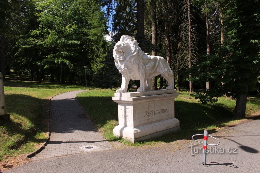 Park se rozkládá na JZ okraji obce, na mírném svahu nad údolím Libverdského potoka. Na východní straně je hranicí silnice, na straně opačné navazuje na park les. Jižní strana parku je nejvýše položená a sousedí s loukami. V parku se nachází několik zajímavých objektů a také hotel Nový Dům, který je centrem místních lázní. Při vchodu do parku od obce vítají návštěvníka sochy dvou lvů. Tady se také…