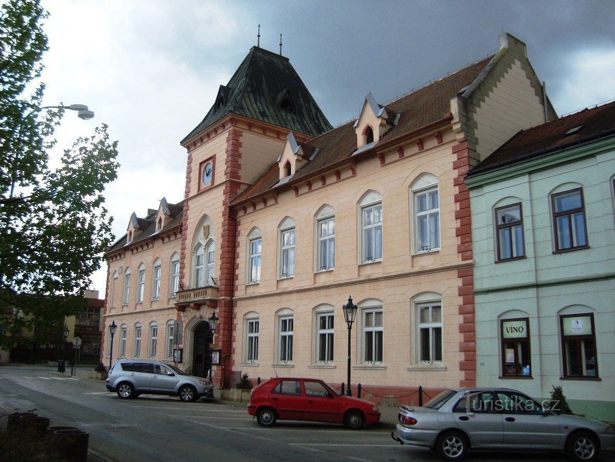 Při přestavbě lednického zámku, jeho zahrad a parků v pol. 19. stol., došlo i k přemístění části města, náměstí a radnice, která byla zbouraná v r. 1880. V stejném roce byly pro vybudování Nové radnice vykoupeny usedlosti v Dlouhé ulici, přeložena silnice a postupně vybudováno nové náměstí v novogotickém stylu a také dnešní radnice.