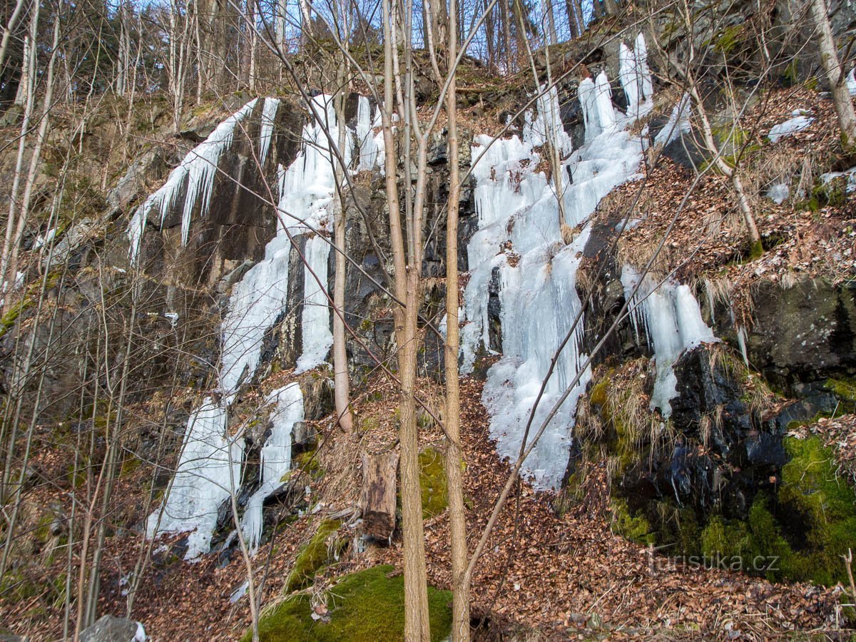 Zas tak mimořádná věc to není. Když je zima a sníh, který občas taje, když přituhne, voda zase zamrzne. Pak na vhodných místech vznikají různé rampouchy, střechýle či ledopády. Pokud leží sníh, ani nebývají tak patrné, ovšem když už začíná odtávat, led většinou vydrží déle než sníh. Pak, pokud to tání není zvláště překotné, vyniknou ty ledopády více.