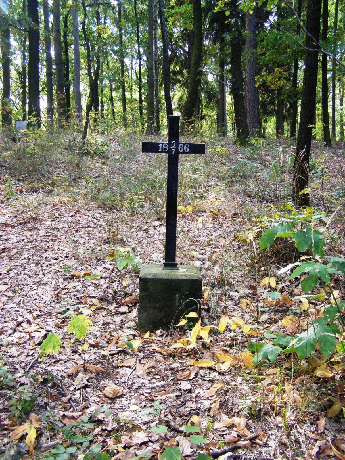 Les Svíb - vyrážíme k lesu jenž byl svědkem jedněch z nejprudších bojů mezi Prusy a Rakušany dne 3.7.1866. K lesu je nejlepší přístup od Máslojed, autem je zde možno zajet přímo až k lesu. Od silnice č. 35 ve směru Hradec Králové - Jičín je možnost příjezdu od Čistěvse. Jdeme do lesa v němž a v jeho okolí posledním spánkem odpočívá téměř 5 000 účastníků bitvy…. Než však vstoupíme do lesa,…