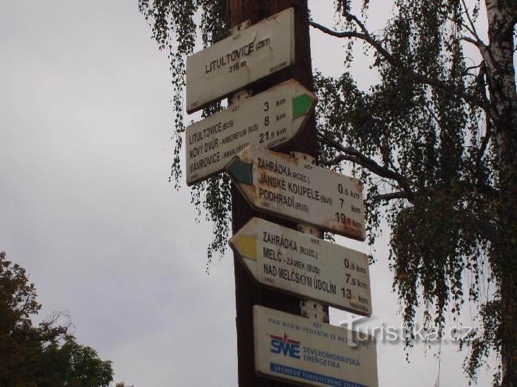Litultovice - železniční stanice je orientační místo na zelené turistické trase a výchozí bod žluté značky. Rozcestník najdeme jak název napovídá u vlakové zastávky v oblasti chatové osady Pilný Mlýn, jižním směrem od obce Litultovice. Kolem rozcestí protéká říčka Hvoznice a nedaleko je rybník Na zastávce. Severním směrem po zelené značce se z těchto míst vydáme kolem větrného mlýn v Cholticích…