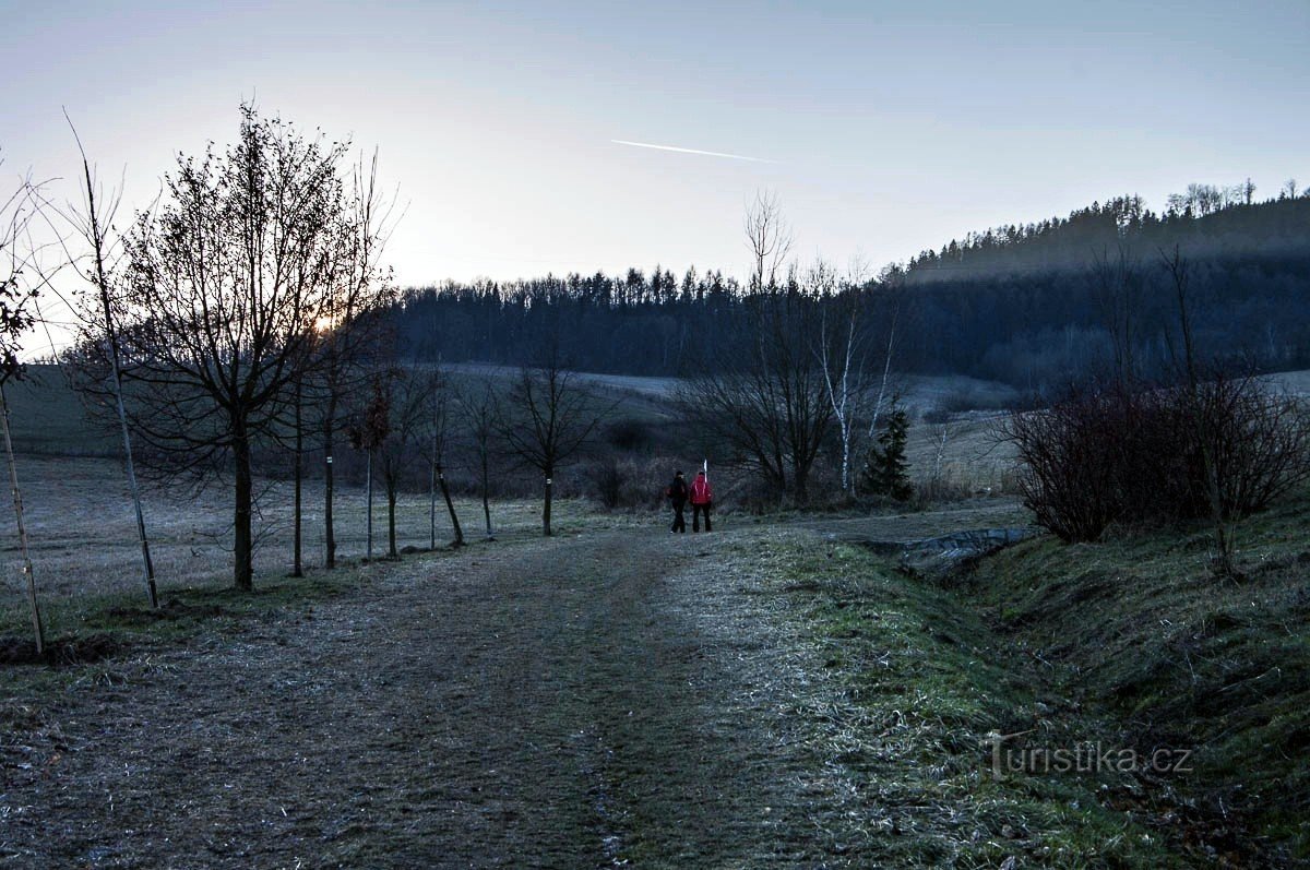 Pěšky. Protože zima se rozhodla naše končiny bojkotovat, místo použití ski nezbývá po svých. Po zamračených týdnech v ledna, které nijak zvlášť nelákaly k výletům do přírody se umoudřilo na chvíli sluníčko a obšťastnilo nás několika paprsky. Když už je den o něco delší, zapíchl jsem to o půl hodiny dřív, ať se podívám do lesa, který nakonec máme kousek za městem. Výhody Šumperka jako maloměsta je…