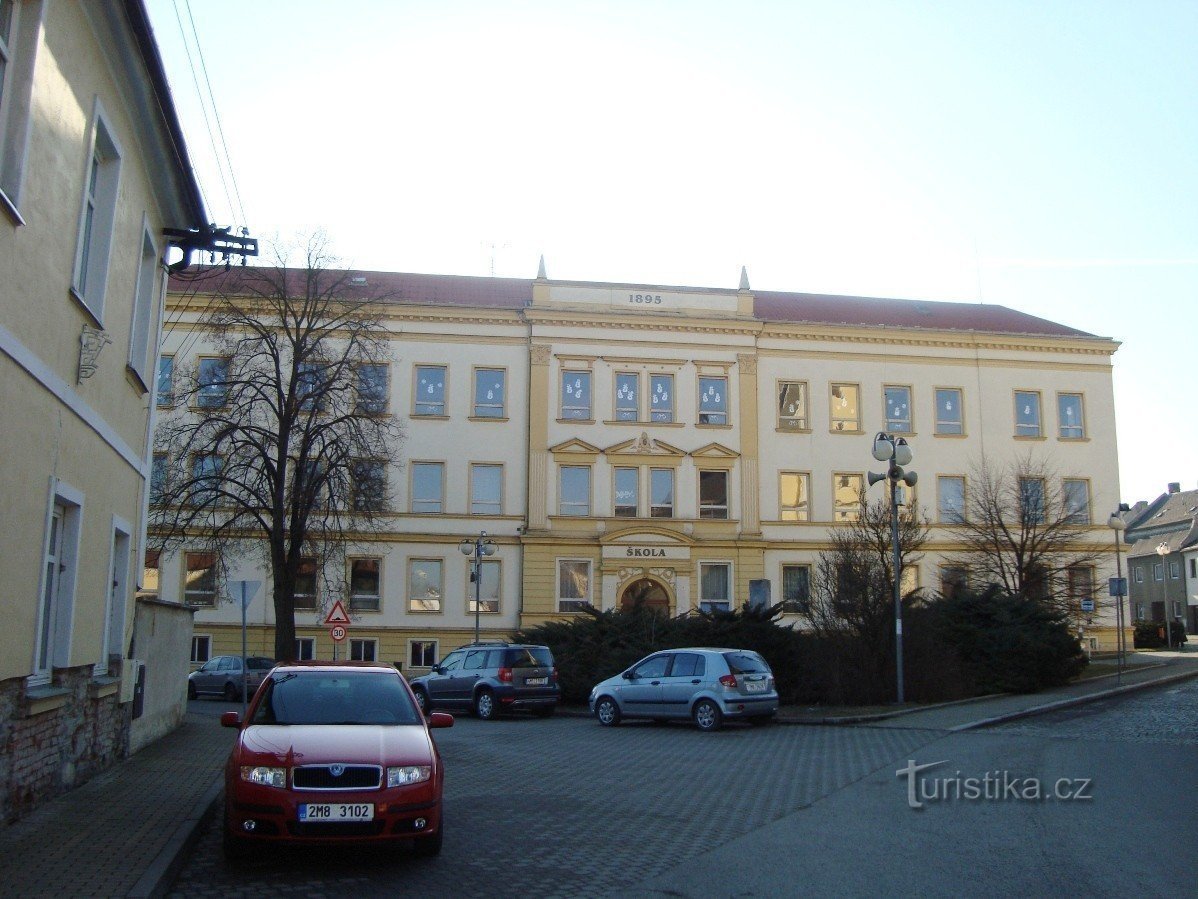 Na Malém náměstí v Lošticích byl vybudován před ZŠ z r. 1895 Památník obětem 1. a 2. světové války. Původně byl na tomto místě odhalen památník obětem 1. světové války v r. 1921, který byl v r. 1940 odstraněn a v r. 1941 zlikvidovány i jeho zbytky. Po 2. světové válce byl na stejném místě vybudován nový památník ve tvaru trojhranu, na jehož čelní stěně je reliéf matky s dítětem a na dalších jména…