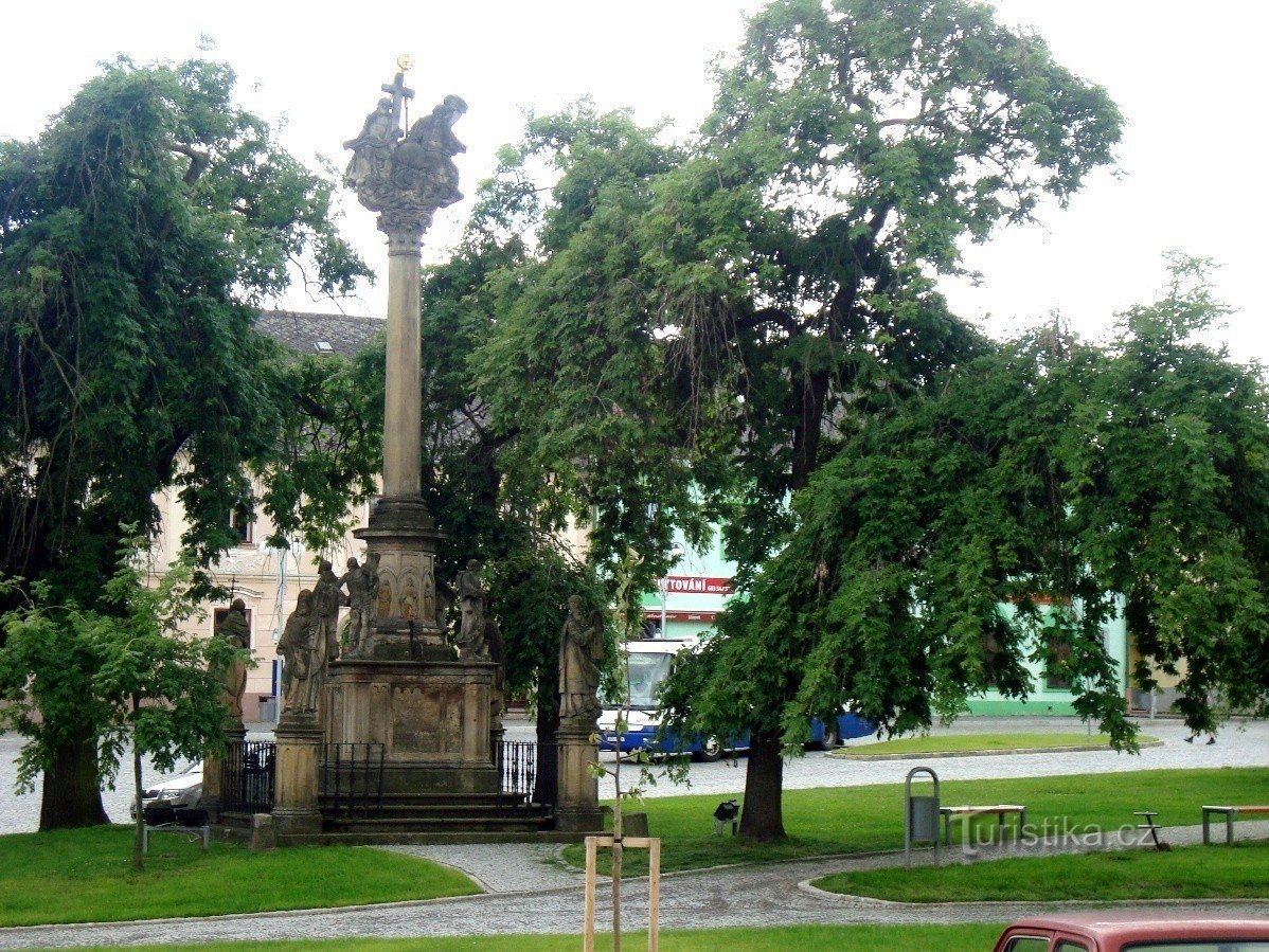 Loštice-sloup se sousoším Nejsvětější Trojice