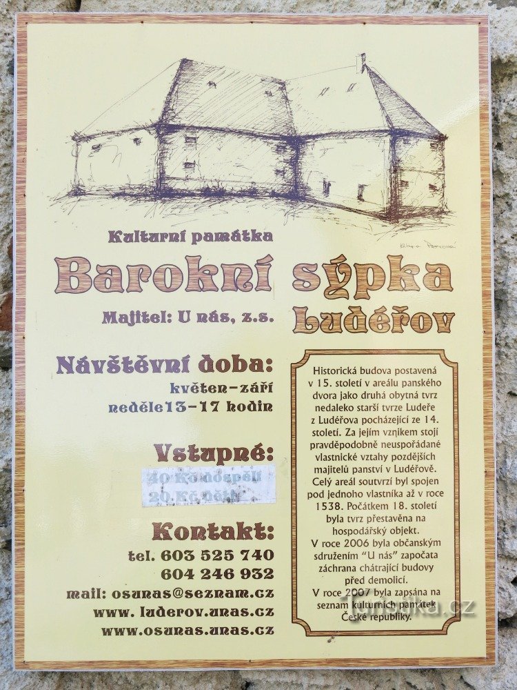 Informací, která by o této zajímavé budově měla asi vždy zaznít jako první, je konstatování, že ludéřovská sýpka není běžnou barokní zemědělskou stavbou z počátku 18. století, ale pozůstatkem někdejší gotické tvrze pocházející nejpozději z konce I. poloviny 14. století (počátkem následujícího století byla tvrz zřejmě přestavěna a o další tři století později se z ní stala sýpka). Jedním dechem je…