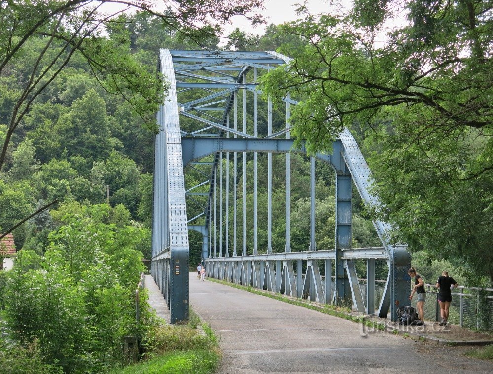 U obce – nebo spíše pod obcí – Skryje na Rakovnicku najdeme zajímavý silniční most přes řeku Berounku. Jedná se o modrý ocelový obloukový most s dolní mostovkou, který byl vyroben v severomoravských vítkovických železárnách v průběhu II. světové války.