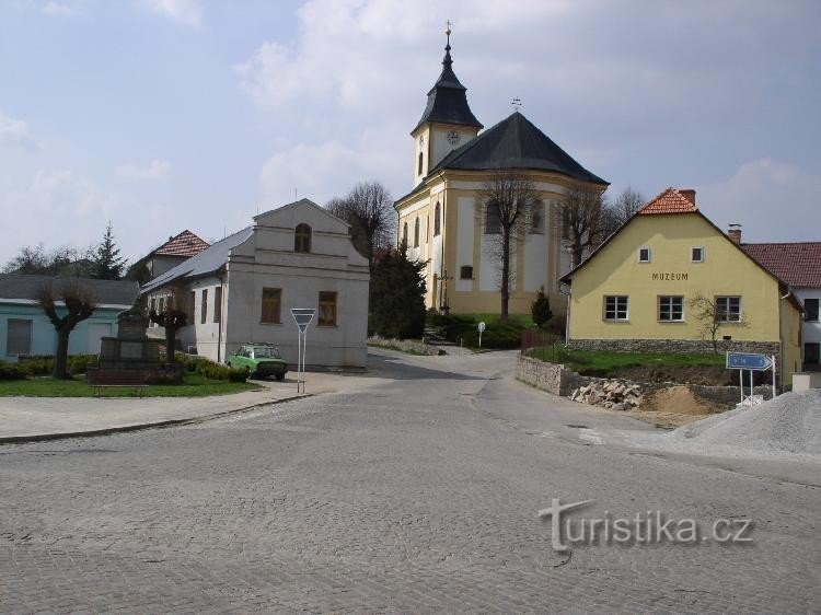 Městečko v údolí Jihlavy při ústí Kozlovského potoka. Železniční zastávka. V obci barokní zámek z let 1739 - 47 (nepřístupný) obklopený anglickým Zámeckým parkem s některými neobvyklými druhy dřevin. Výrazný barokní kostel z let 1735 - 63. Poblíž lyžařský areál s vlekem a umělým zasněžováním. U obce koupaliště.
