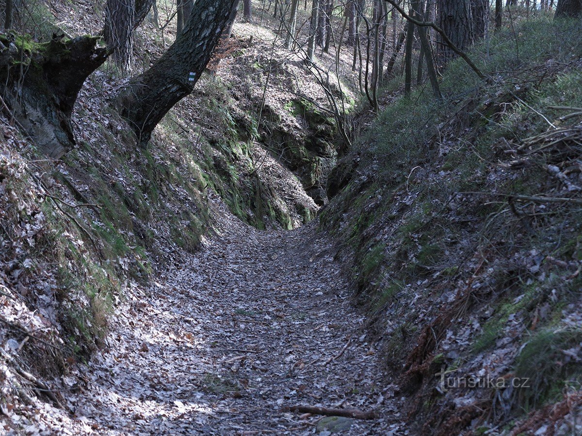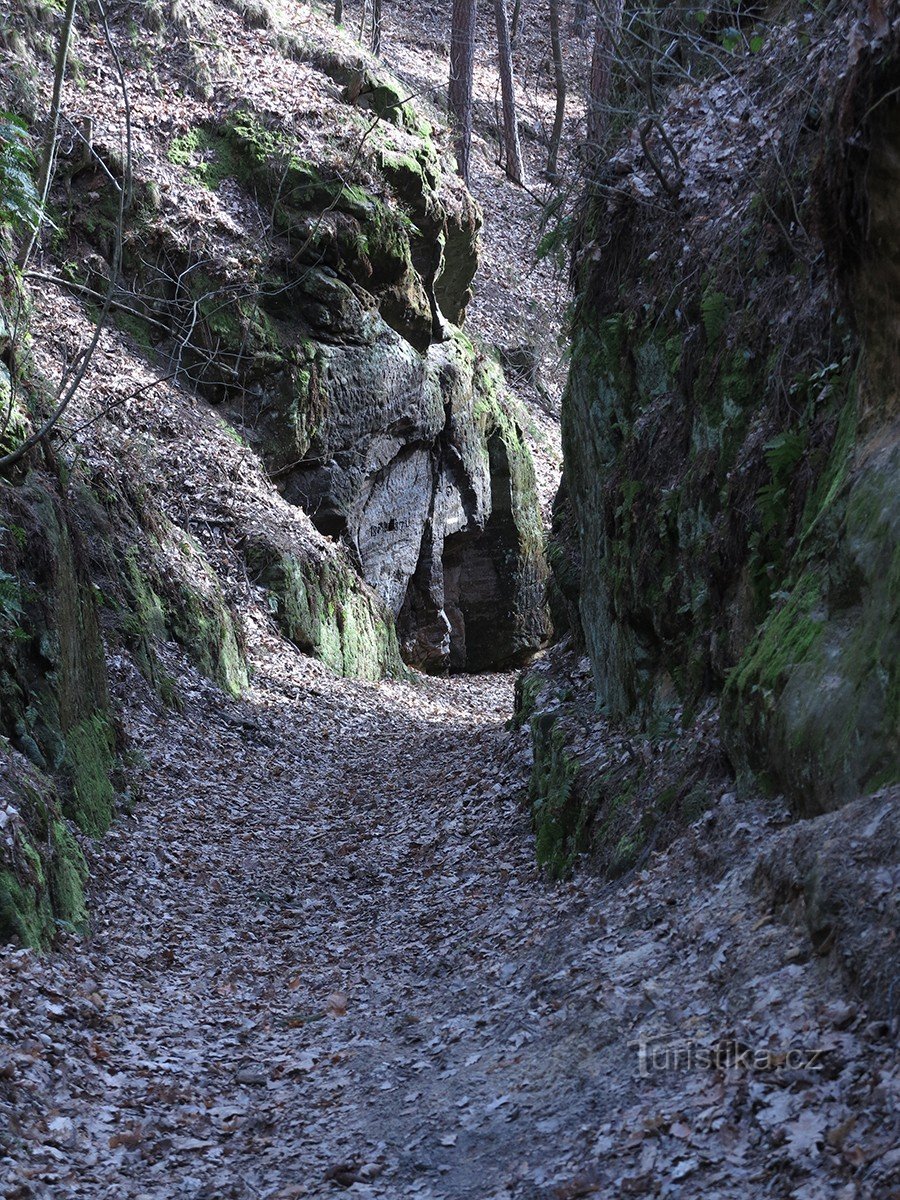Vyrazíme po zelené turistické značce ze Cvikova směrem na Drnovec a okolo skalního divadla a motelu Dutý kámen (poblíž zajímavá přírodní památka Dutý Kámen) dojdeme kaňonem mezi skalami ke skalní…