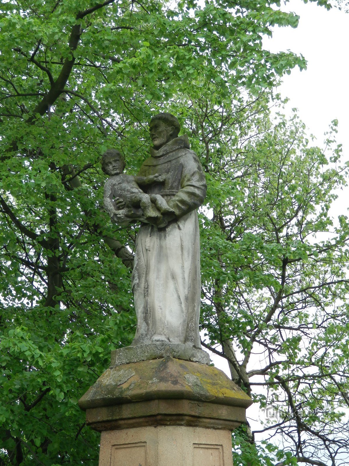 Již při příjezdu do Lysic od Černé Hory nás v poslední zatáčce před městysem, ve stínu několika starých lip, vítá kamenná socha sv. Antonína s Ježíškem v náručí.