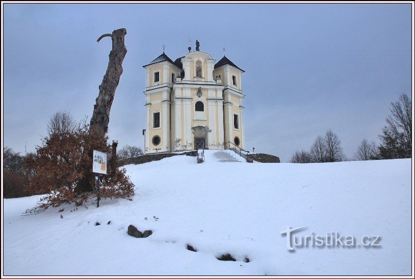 Pokud hledáte místo, kde se „Nebe dotýká země“, tak jste tu správně, na Makové hoře nedaleko od Smolotel, jihovýchodně od Příbrami a severozápadně od Orlické přehrady v Benešovské pahorkatině. Když jsme tu byli my, platilo to doslova. Šedobílé nebe splývalo se zasněženým okolím a vrchol kostela svatého Jana Křtitele a Panny Marie z hory Karmel se opravdu jakoby nebe dotýkal. Ke…