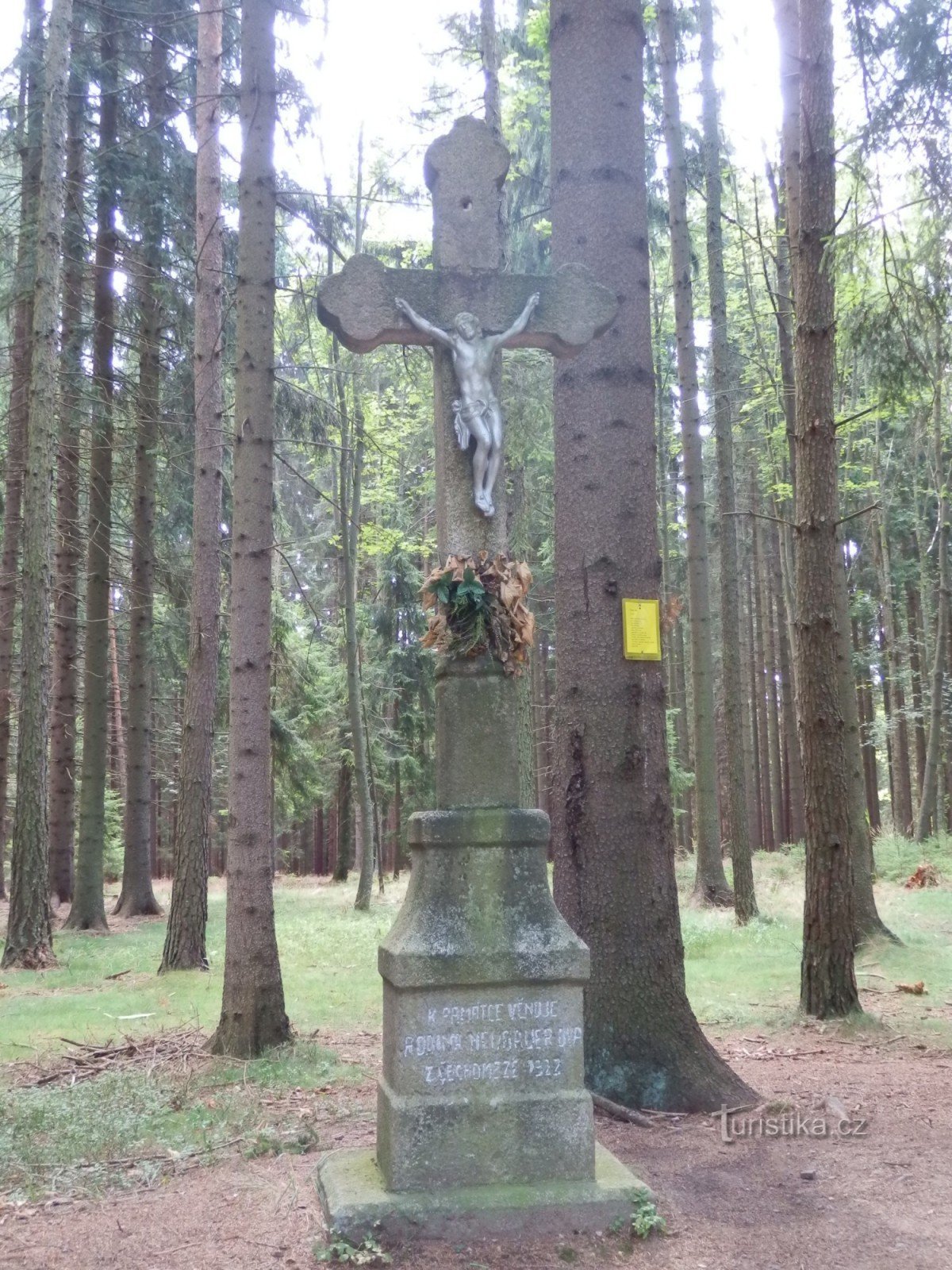 Od žďárského nádraží se vydáme po modré turistické značce nejdříve půl kilometru ke strojírnám Žďas a poté kolem areálu Střední školy technické konečně do lesa, 2,5 km na Rozcestí U Křížku.