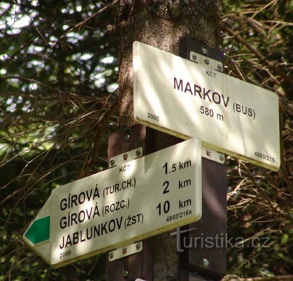 Markov - BUS je rozcestí u kocového bodu značené odbočky ze zelené turistické trasy, která vede z obce Hrčava kolem turistické chaty Girová do města Jablunkov. Odbočku najdeme u jihovýchodního okraje horské rekreační osady Bařiny. Odbočíme-li ze zelené značky dojdeme k zastávce autobusu u malé horské osady Markov. Rozcestník je umístěn u silnice vedoucí z obce Mosty u Jablunkova do obce Hrčava.…