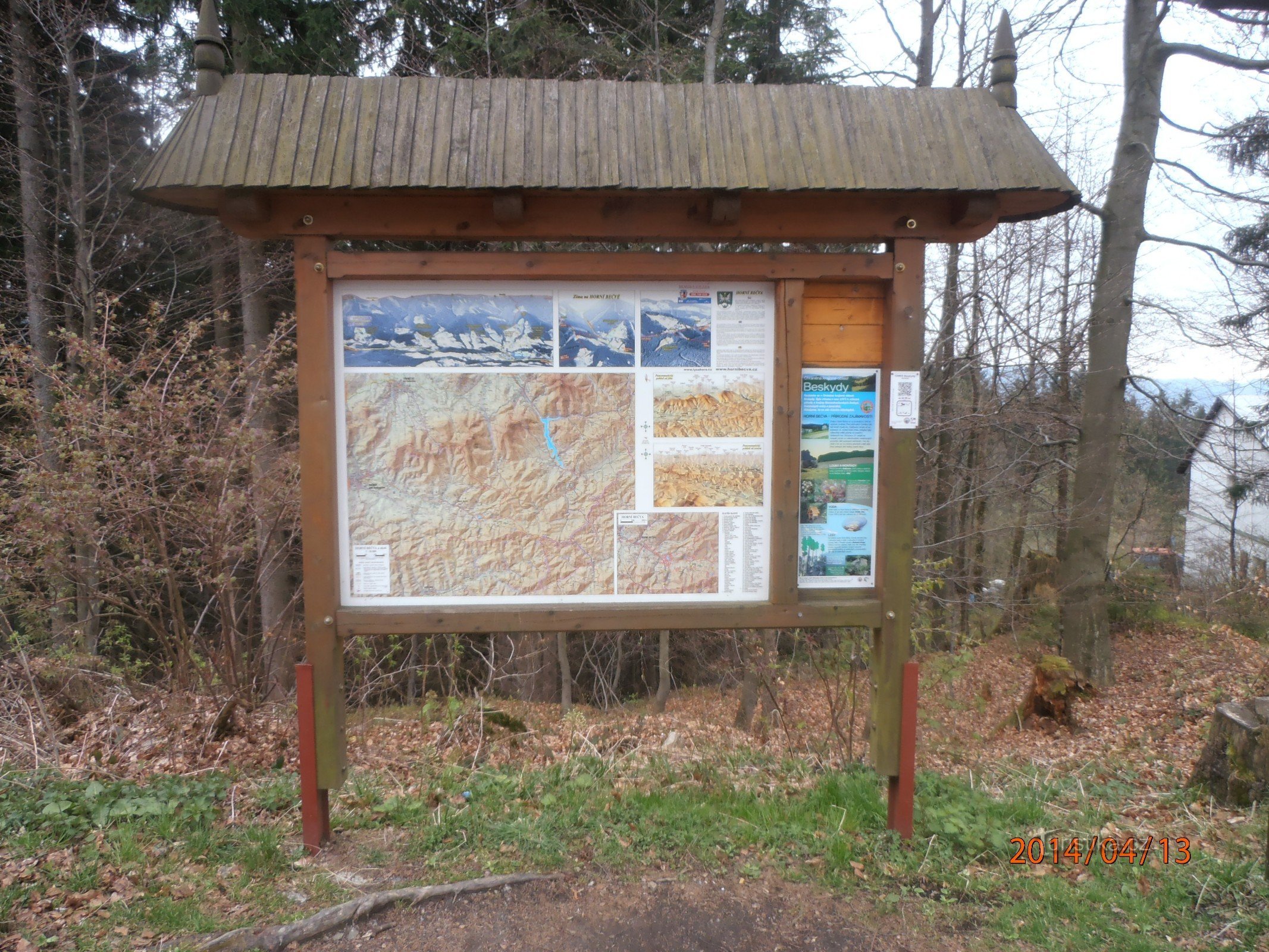 Rozcestník U Martiňáku je důležitým uzlem turistických značek - modré, žluté, červené a zelené.